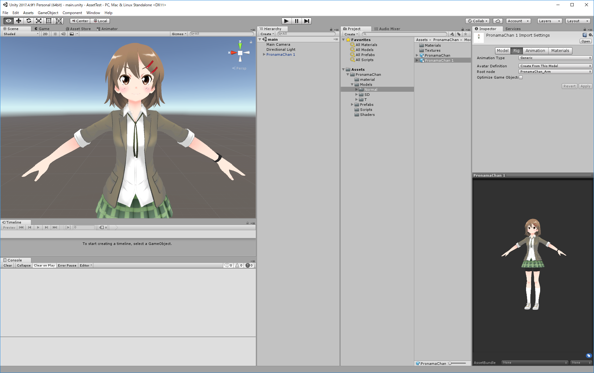 ここでは、プロ生ちゃんノーマル版を使用します。アニメーションを出力する場合は、アバターのアニメーションタイプをGenericにする必要があります。