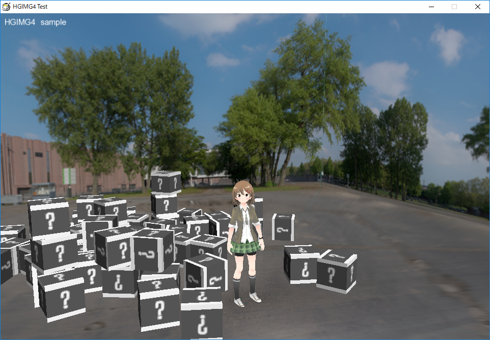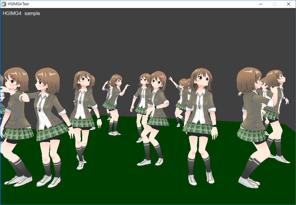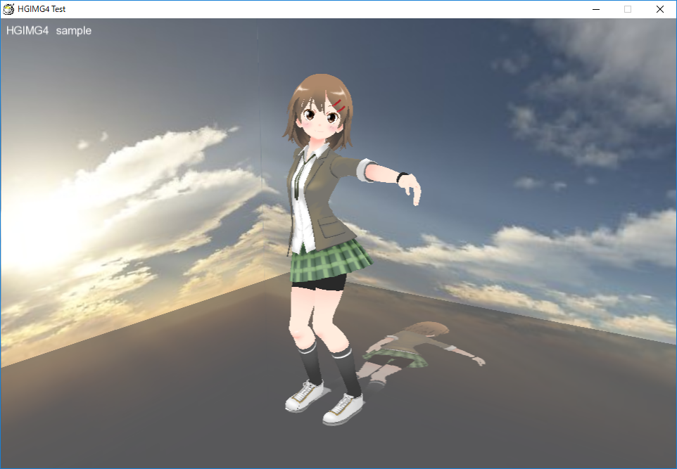 サンプルとして同梱されている「プロ生ちゃんデモ」(sample/pronama3d)により、HGIMG4を使った3Dキャラクターアニメーションのサンプルを確認することができます。