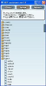 また、「スタートメニュー」のプログラムグループから「Hot Soup Processor 3.6」→「HSPアシスタント」 を選択することで。HSPサンプルスクリプトを閲覧するための「HSPアシスタント」が起動します。 「HSPアシスタント」で、「Sample」のボタンを押してからファイルを選択するだけで、 すぐに実行・閲覧することができます。