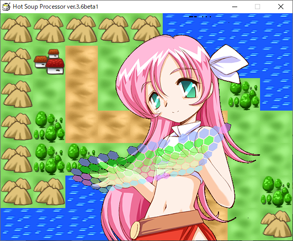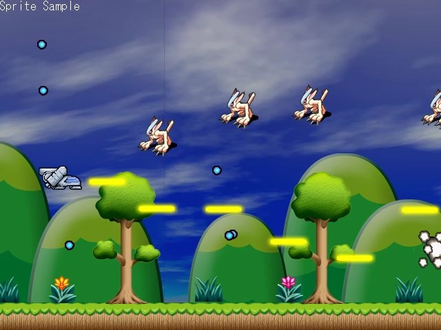 標準スプライトの命令は、hspdxプラグインとして追加されていた命令と互換があり、2D描画を手軽に扱うことが可能です。
