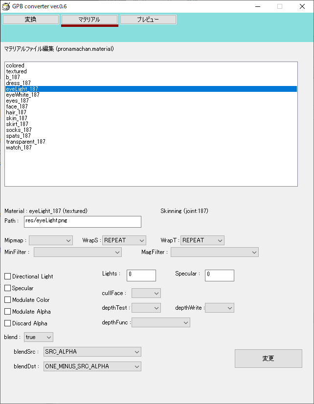 新しいHGIMG4ツールでは、fbxファイルを変換した後の3Dデータをより詳細に確認、編集できるようになりました。マテリアル(.material)ファイルをGUIにより詳細に確認することが可能になっています。